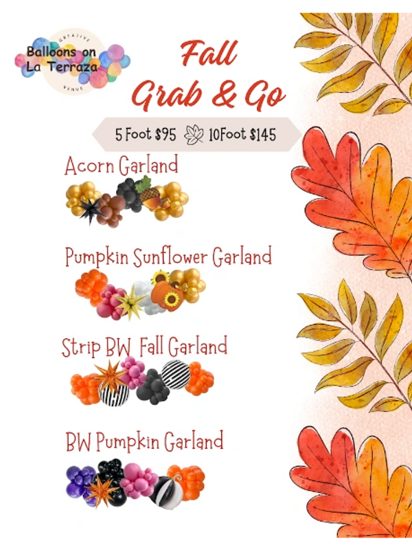 Get ready to elevate your autumn celebrations with our stunning Fall Grab-and-Go Balloon Garlands! Available in both 5-foot and 10-foot options. Pre-order: Pickup or Delivery